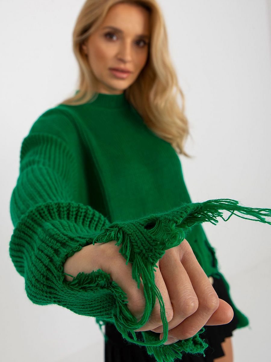 Sweter o luźnym kroju z długim rękawem oraz stójką. Propozycja idealna na co dzień i nie tylko.