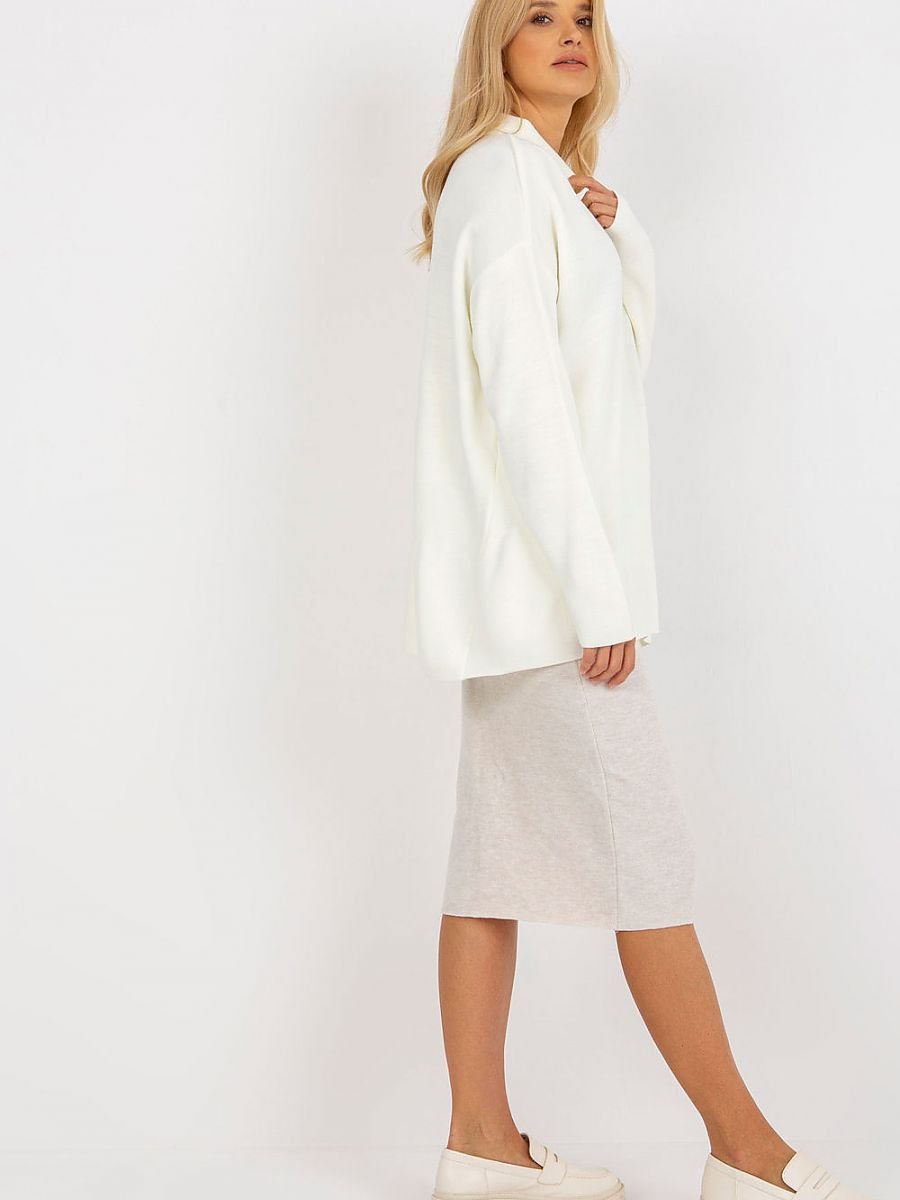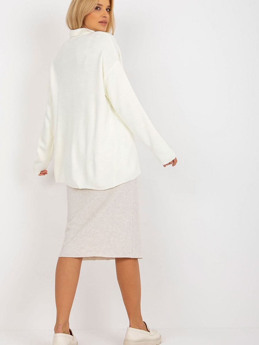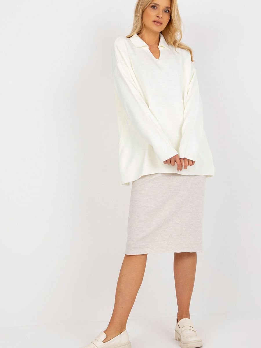 Sweter o luźnym kroju z długim rękawem oraz dekoltem w serek. Propozycja idealna na co dzień i nie tylko.