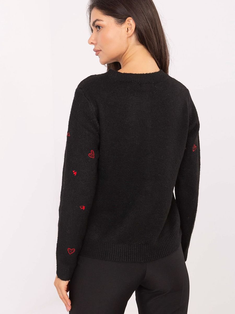 Uroczy sweter damski o casualowym charakterze, idealny na codzienne stylizacje. Wykonany z przyjemnej w dotyku mieszanki poliesteru, akrylu i wełny, która zapewnia ciepło i komfort noszenia. Model ma standardową długość, długi rękaw oraz okrągły dekolt, a jego przód i rękawy zdobią haftowane serduszka, nadające całości dziewczęcego uroku. Zapięcie na guziki podkreśla klasyczny fason i sprawia, że sweter świetnie komponuje się zarówno z jeansami, jak i spódnicą.