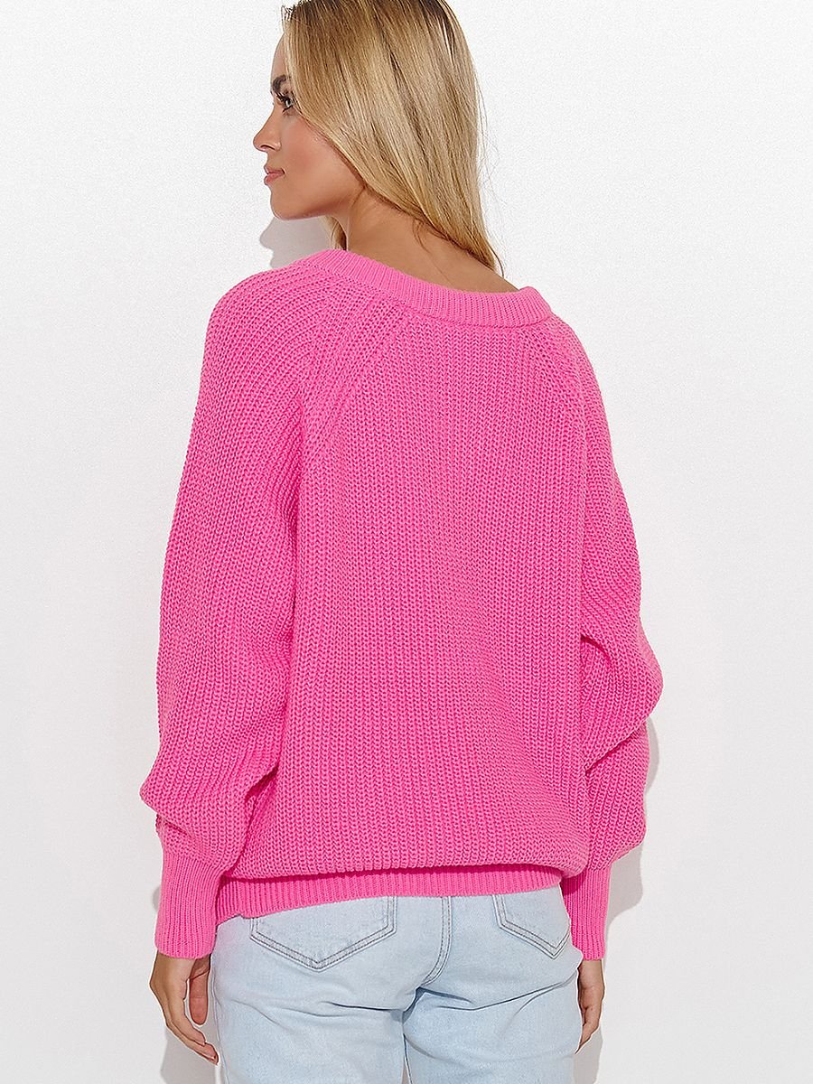 Klasyczny sweter damski to niezawodny element garderoby, który sprawdzi się w różnych sytuacjach. Dekolt w serek nadaje mu subtelności i elegancji, jednocześnie pozostając odpowiednio skromnym do noszenia na różne okazje. Luźny fason swetra zapewnia wygodę i swobodę ruchów, co sprawia, że jest doskonałym wyborem zarówno do pracy, na uczelnię, jak i na spotkanie ze znajomymi. Jednolity splot dodaje mu klasycznego charakteru, co czyni go uniwersalnym i łatwym do zestawienia z innymi elementami garderoby. Ozdobna złota blaszka to elegancki detal, który podkreśla jego wyjątkowość. Wybierz perfekcyjny kolor dla siebie i wyrażaj swoją osobowość!