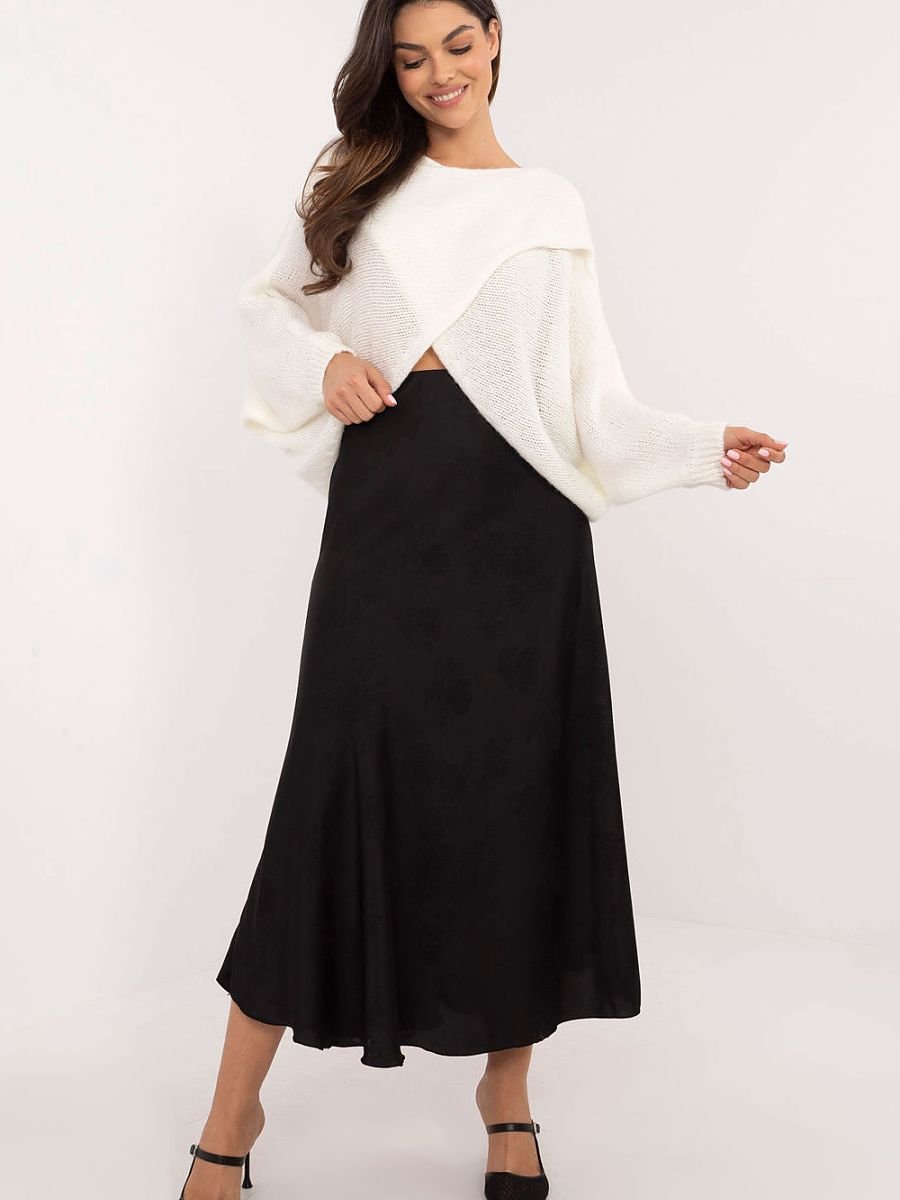 Ten wyjątkowy sweter to połączenie komfortu i stylu. Miękki, przyjemny w dotyku materiał z domieszką wełny zapewnia ciepło w chłodniejsze dni. Sweter ma klasyczny, okrągły dekolt i długie rękawy, a jego największą ozdobą jest oryginalny, zakładany przód. Brak zapięcia sprawia, że sweter jest niezwykle wygodny. Gładki wzór pozwala na łatwe łączenie go z różnymi elementami garderoby.