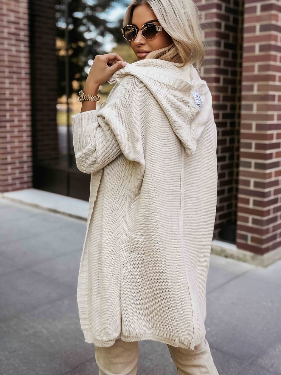 Stylowy kardigan z kapturem marki Numoco Basic to idealna propozycja na chłodniejsze dni. Wykonany z wysokiej jakości dzianiny. Jest miękki, przyjemny w dotyku i zapewnia komfort noszenia przez cały dzień. Luźny fason z praktycznym kapturem i naszywką z napisem LOVE nadaje mu wyjątkowego charakteru, a modne ściągacze na rękawach dodają całości lekko sportowego, nowoczesnego stylu. Beżowy kolor sprawia, że narzutka doskonale komponuje się zarówno z casualowymi, jak i eleganckimi stylizacjami.