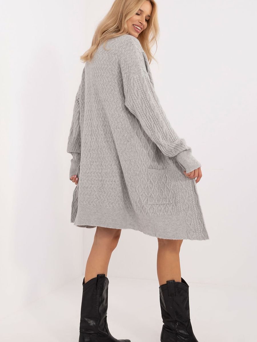 Długi kardigan bez zapięcia to idealna narzutka na co dzień, która łączy styl casual z wygodą. Wykonany z mieszanki akrylu, poliestru i poliamidu, zapewnia ciepło i komfort, a jednocześnie jest lekki i przyjemny w dotyku. Urozmaicona faktura materiału dodaje mu wyjątkowego charakteru, sprawiając, że jest nie tylko praktyczny, ale także stylowy. Kardigan posiada długie rękawy oraz wsuwane kieszenie, które zwiększają jego funkcjonalność. Jego długa forma doskonale sprawdzi się w chłodniejsze dni, idealnie pasując do casualowych stylizacji na co dzień. To uniwersalny element garderoby, który świetnie uzupełni każdy strój, dodając mu eleganckiej swobody.