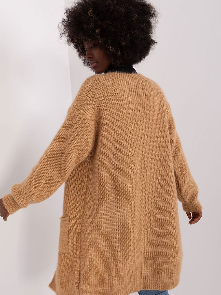 Ten kardigan to doskonały wybór na co dzień. Wykonany z wysokiej jakości akrylu, jest nie tylko przyjemny w noszeniu, ale także trwały. Ma długi rękaw, który zapewnia ciepło w chłodniejsze dni. Kardigan nie ma zapięcia, co nadaje mu swobodny i luźny charakter. Po bokach posiada praktyczne kieszenie wsuwane, które są zarówno wygodne, jak i stylowe. Jego gładki wzór sprawia, że pasuje do wielu różnych stylizacji. Długość swetra sięga przed kolano, co dodaje mu elegancji i nadaje się idealnie do noszenia na co dzień. To must-have w szafie każdej osoby ceniącej komfort i styl.