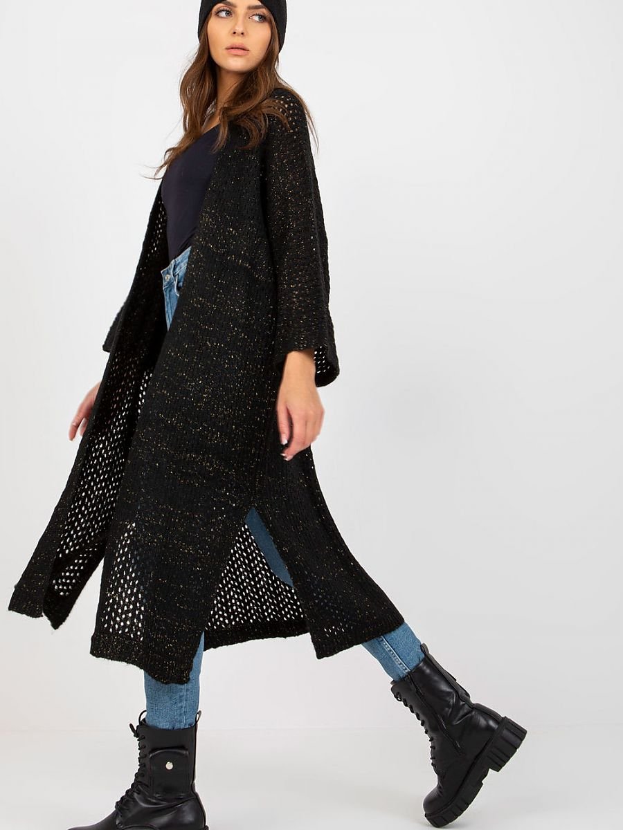 Długi kardigan z długim rękawem, bez zapięcia. Kardigan z ażurowym wzorem.