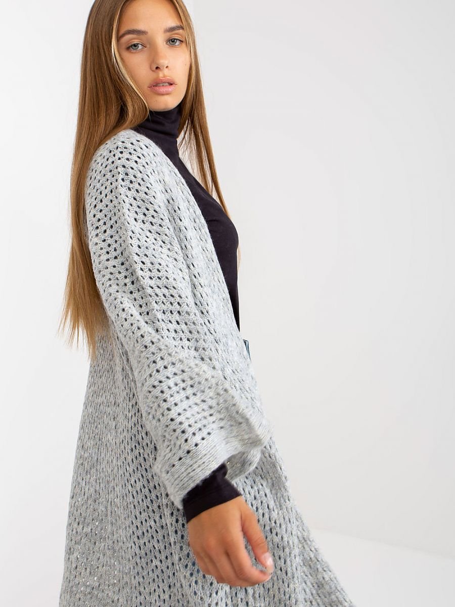 Długi kardigan z długim rękawem, bez zapięcia. Kardigan z ażurowym wzorem.
