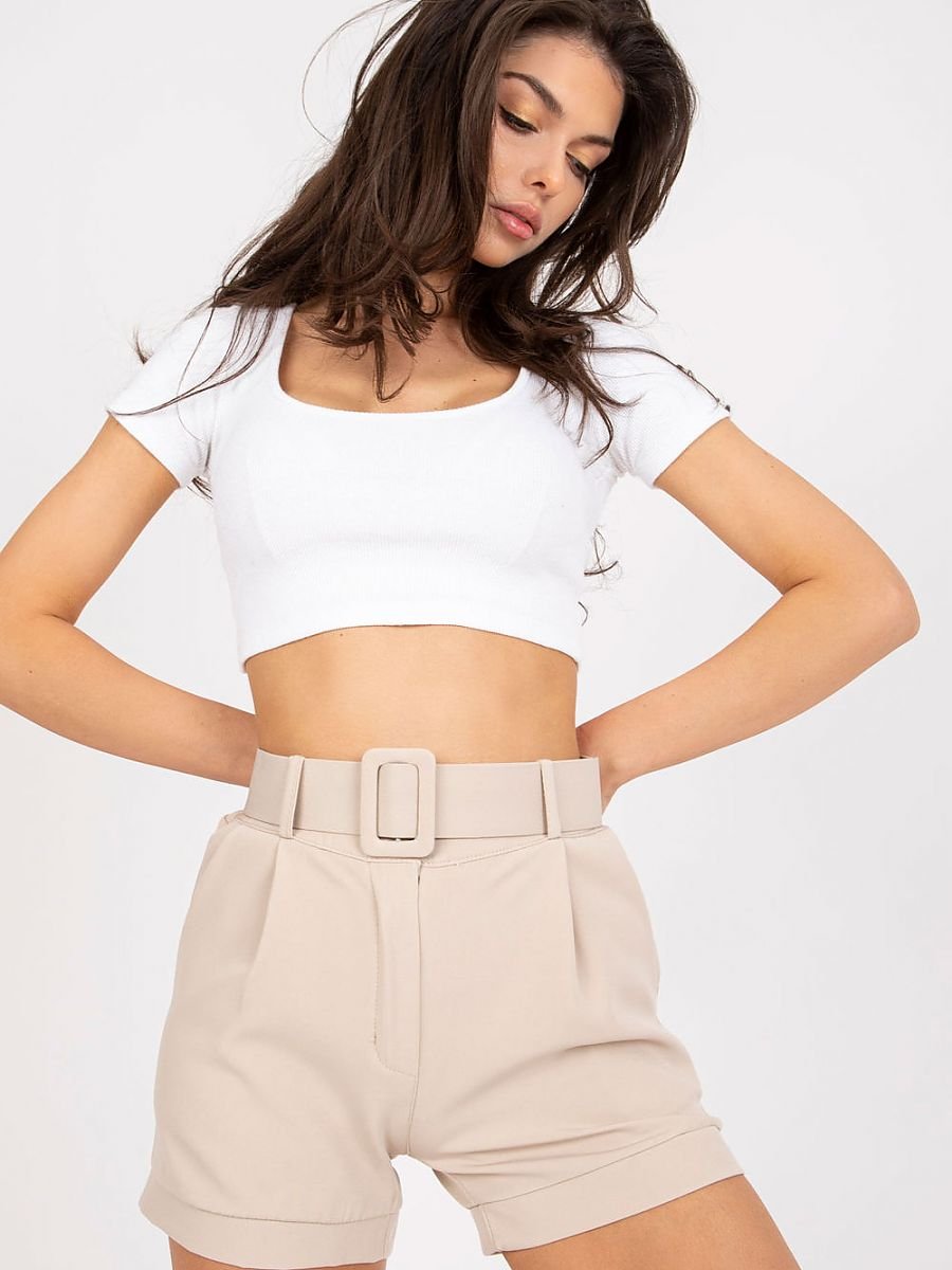 Eleganckie szorty damskie, zapinane na zamek i guzik. Po bokach kieszenie wsuwane. Do kompletu w jednakowym kolorze pasek. Idealne na wiele okazji.