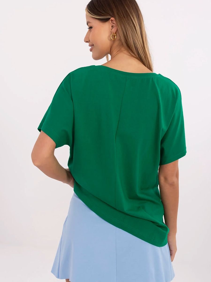 Stylowy i wygodny t-shirt damski w casualowym stylu to idealny wybór na codzienne okazje. Wykonany z wysokiej jakości bawełny, zapewnia przewiewność i komfort noszenia przez cały dzień. Model o standardowej długości, z krótkim rękawem i klasycznym, okrągłym dekoltem świetnie komponuje się z jeansami, szortami czy spódnicą. Dominujący nadruk na przodzie dodaje charakteru i sprawia, że koszulka wyróżnia się w każdej stylizacji. Świetna baza do codziennych zestawów lekka, wygodna i zawsze na czasie.