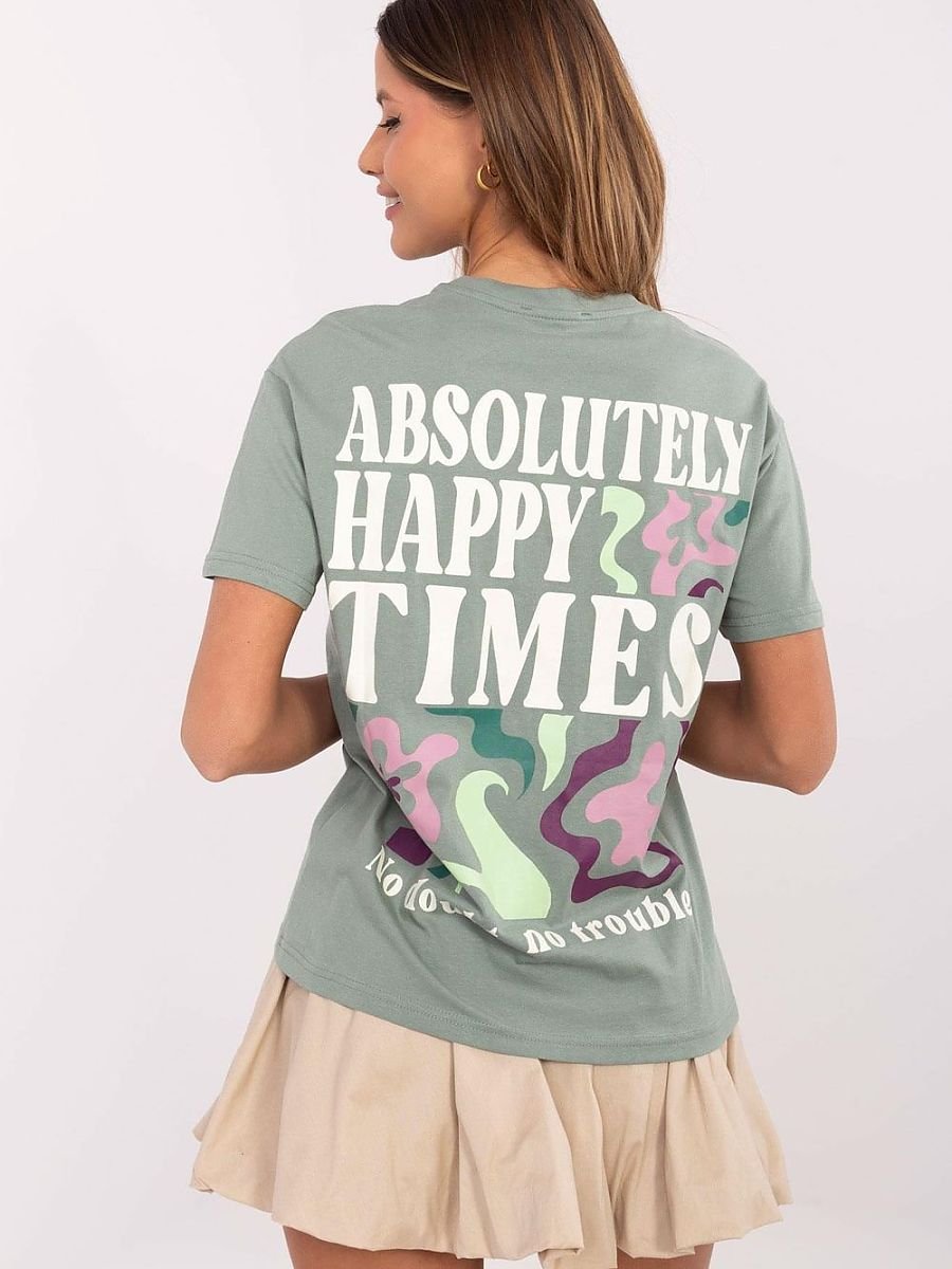 Damski t-shirt o klasycznym kroju, wykonany z wysokiej jakości bawełny, zapewniającej komfort noszenia. Przód zdobi subtelny nadruk z napisem, nadający koszulce modnego, minimalistycznego charakteru. Tył wyróżnia ozdobny nadruk połączony z dynamicznymi napisami, które dodają całości oryginalnego wyrazu. Model o standardowej długości, z krótkimi rękawami i okrągłym dekoltem, doskonale sprawdzi się w codziennych stylizacjach. Idealny wybór dla kobiet ceniących wygodę i styl w jednym.