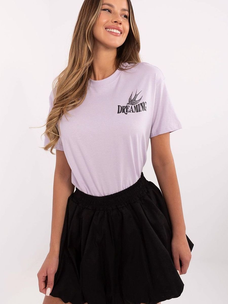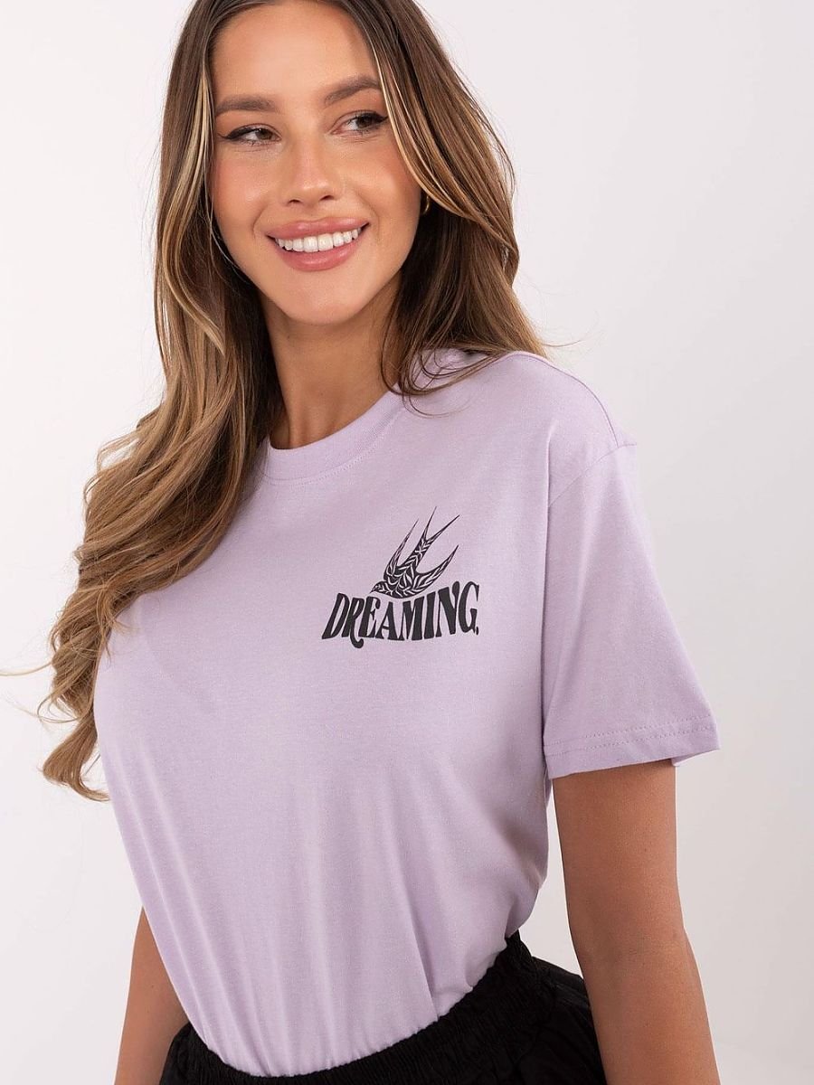 Damski t-shirt o klasycznym kroju, wykonany z wysokiej jakości bawełny, zapewniającej komfort noszenia. Przód zdobi subtelny nadruk z napisem, nadający koszulce modnego, minimalistycznego charakteru. Tył wyróżnia ozdobny nadruk połączony z dynamicznymi napisami, które dodają całości oryginalnego wyrazu. Model o standardowej długości, z krótkimi rękawami i okrągłym dekoltem, doskonale sprawdzi się w codziennych stylizacjach. Idealny wybór dla kobiet ceniących wygodę i styl w jednym.