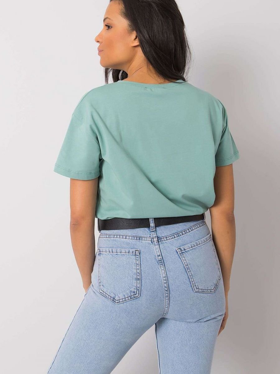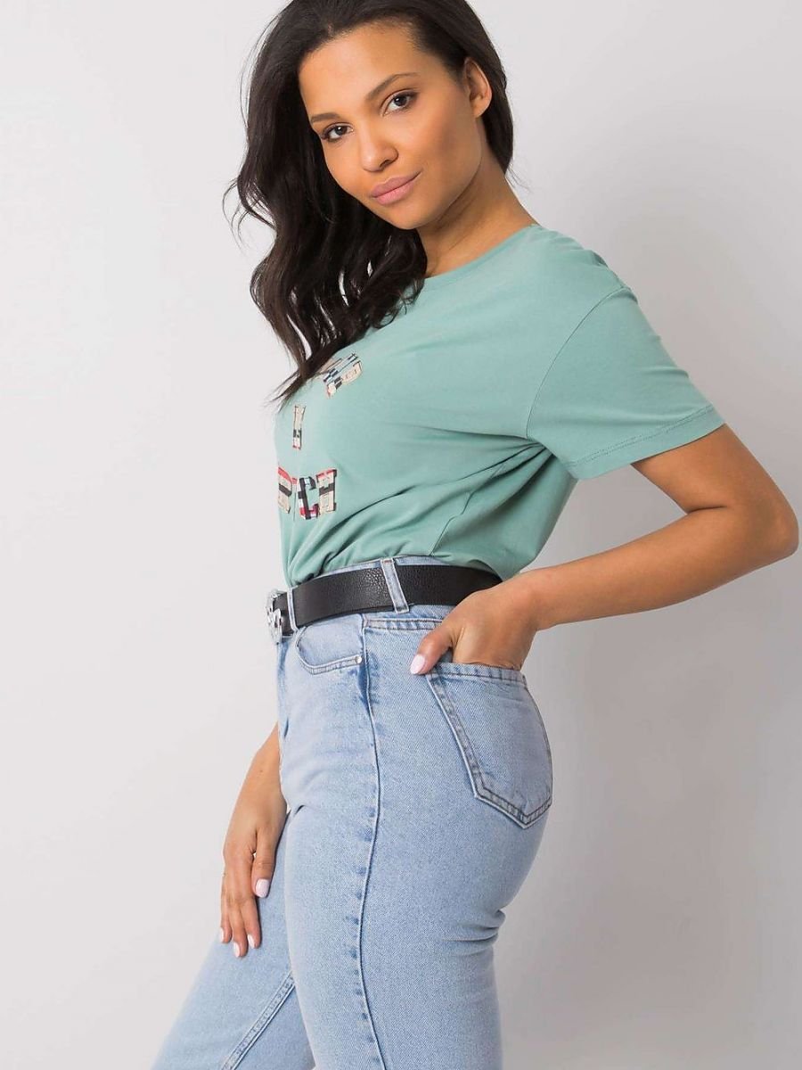 Tshirt damski o luźniejszym kroju, z krótkim rękawkiem oraz okrągłym dekoltem. Na przodzie ozdobny napis.