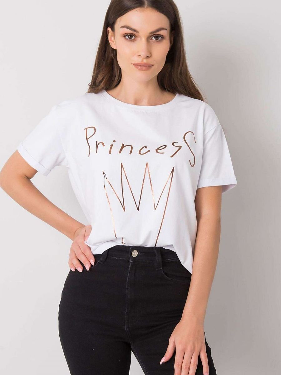 Tshirt damski z krótkim rękawkiem oraz okrągłym dekoltem. Na przodzie ozdobny nadruk.