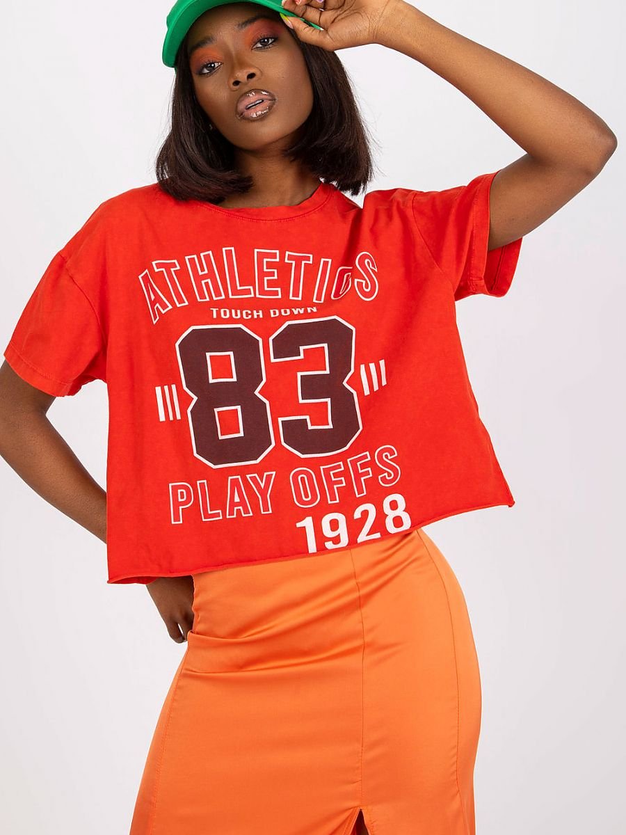 Krótki tshirt damski o luźnym kroju, z krótkim rękawem. Na przodzie duży napis.