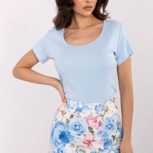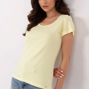 Damski t-shirt w casualowym stylu, idealny na co dzień. Wykonany z miękkiej mieszanki bawełny i elastanu, zapewnia wygodę oraz elastyczność, dopasowując się do sylwetki. Gładki materiał podkreśla prostotę i uniwersalność modelu. Krótkie rękawy i okrągły dekolt tworzą klasyczny fason, który pasuje do wielu stylizacji. Ozdobny haft na rękawach dodaje bluzce subtelnego, ale oryginalnego akcentu, nadając jej wyjątkowego charakteru. Idealny wybór do codziennych, casualowych outfitów.