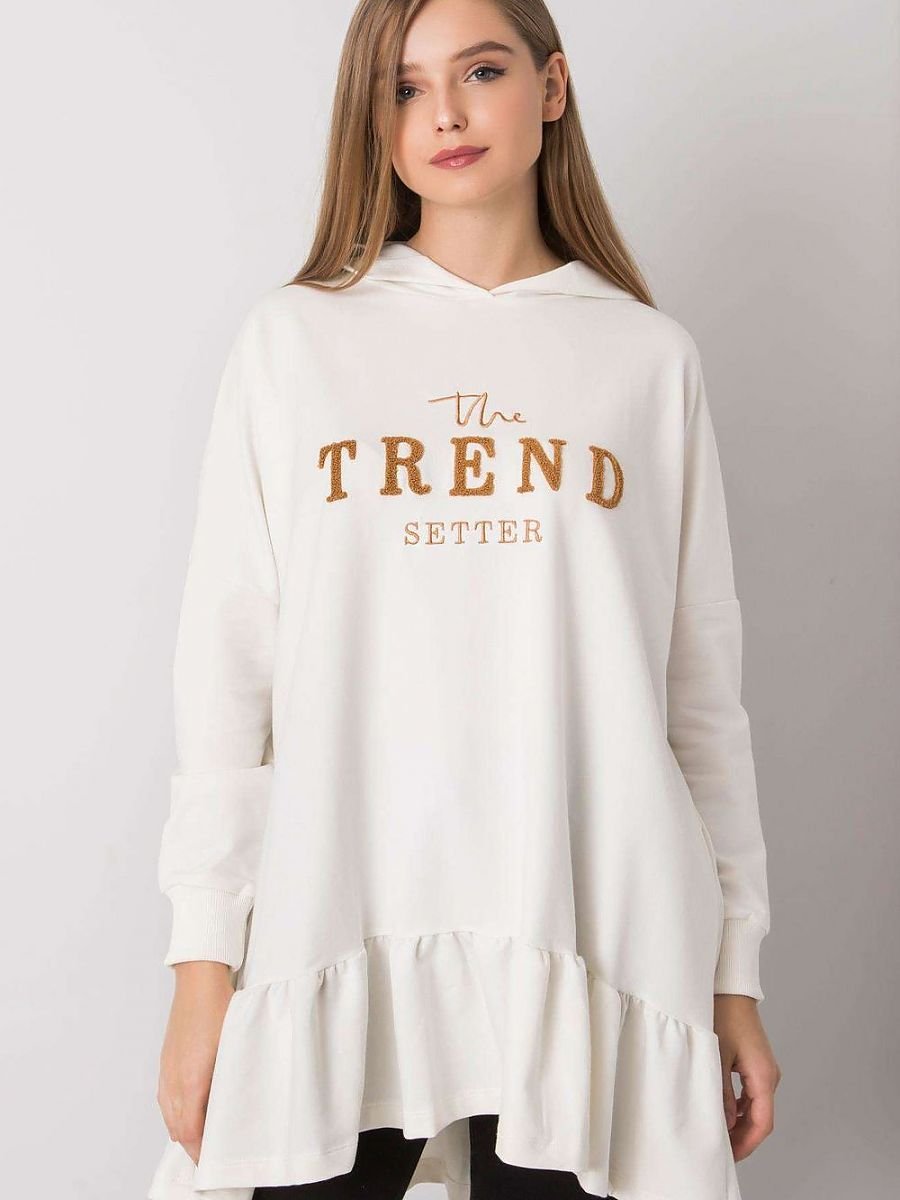 Tunika dresowa z falbaną, kapturem i długim rękawem. Po bokach kieszenie. Idealna do wielu stylizacji.