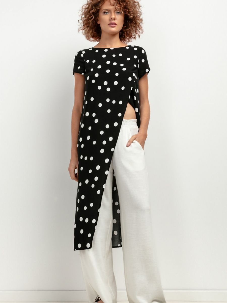 Tunika z wiskozy T410 to niezbędny element letniej garderoby każdej kobiety, która ceni sobie styl i wygodę. Dzięki wzorzystemu designowi nadaje się doskonale na plażę, ale również sprawdzi się podczas letnich wieczorów czy spacerów po mieście. Oryginalny fason oraz przewiewny materiał sprawiają, że narzutka jest lekka i komfortowa w noszeniu, idealna do noszenia zarówno na kostiumie kąpielowym, jak i na codziennych ubraniach. Wykonana z 100% wiskozy tunika gwarantuje najwyższą jakość materiału, co przekłada się na trwałość produktu oraz komfort użytkowania. Wiskoza jest naturalnym włóknem roślinnym o bardzo przyjemnej dla skóry fakturze, dzięki czemu narzutka zapewnia uczucie miękkości i delikatności nawet podczas upalnych dni. Doskonale układa się na sylwetce, dodając elegancji i lekkości każdemu outfitowi. Dzięki swojej uniwersalności tunikę z łatwością dopasujesz do różnorodnych stylizacji, od casualowych po bardziej eleganckie. Wystarczy założyć ją na ulubiony strój lub kostium kąpielowy, aby dodać mu świeżości i oryginalnego charakteru. Ponadczasowy wzór sprawia, że będzie ona modna przez wiele sezonów letnich, świetnie prezentując się zarówno nad morzem jak i w miejskich parkach. Tunika z wiskozy T410 to absolutne must-have tego lata! Jej lekki materiał oraz oryginalny design sprawią, że poczujesz się swobodnie i kobieco bez względu na okoliczności. Niech ta wyjątkowa narzutka stanie się Twoim ulubionym elementem letniej garderoby – idealnym uzupełnieniem letnich stylizacji oraz nieocenionym sojusznikiem podczas gorących dni!