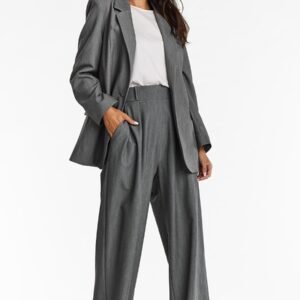 Elegancki żakiet na guzik. Szykowny fason świetnie pasuje do wielu zestawień, zarówno do sukienek jak i do spódnic z wysokim stanem. Krój sprawia, że perfekcyjnie ustawia proporcje sylwetki wydłużając ją. Doskonale sprawdzi się w połączeniu total look ze spódnicą z tej samej tkaniny, ale zawsze możesz zestawić go z sukienkami bądź spodniami. Żakiet ma długie, proste rękawy. Wykończony jest podszewką oraz ozdobnym, srebrnym guzkiem.